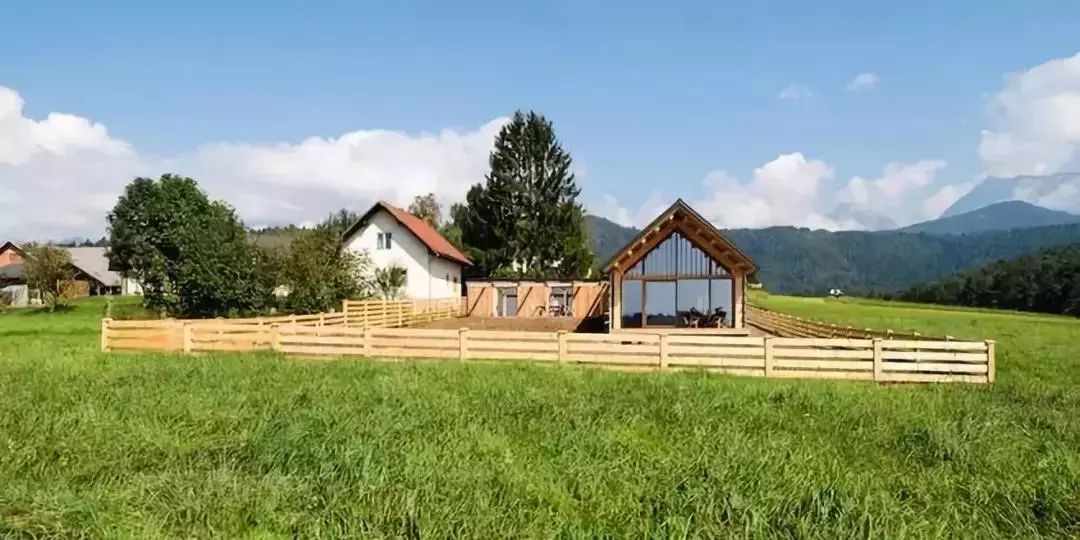 △干脆利落的玻璃窗加上朴实的木栅栏,让乡村田园风光尽收眼底