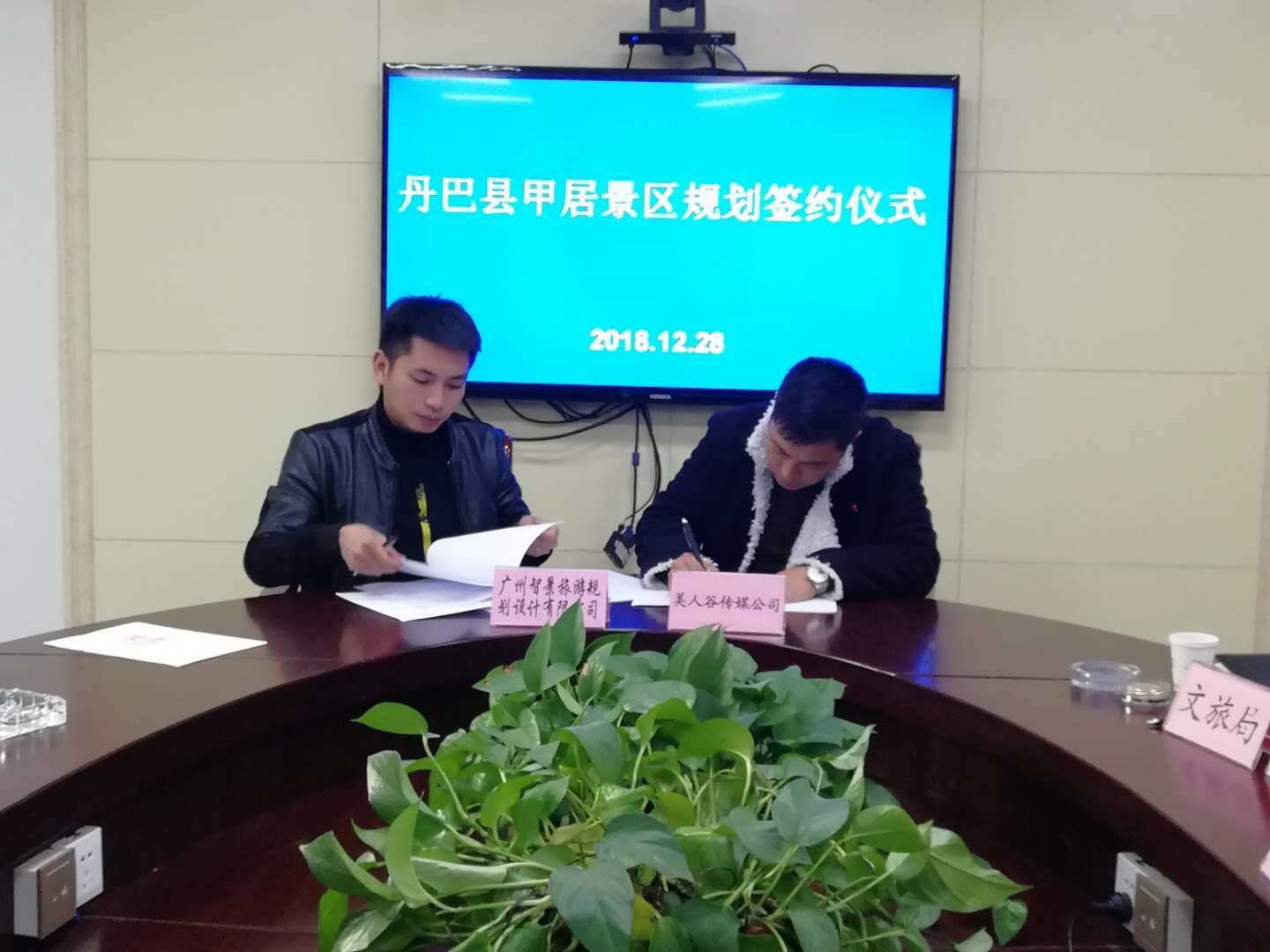 2018年12月28日,我司领导陈欢率领课题组赴四川省甘孜藏族自治州考察甲居藏寨旅游景区,并与丹巴县美人谷文化传媒公司签订合作协议,正式启动《四川甘孜甲居景区总体规划及重要节点修建性详细规划》编制工作,全力协助藏区旅游发展和乡村振兴。甘孜州甲居项目指挥长、丹巴县县委书记、文旅局、美人谷文化传媒公司等领导出席了签约会。