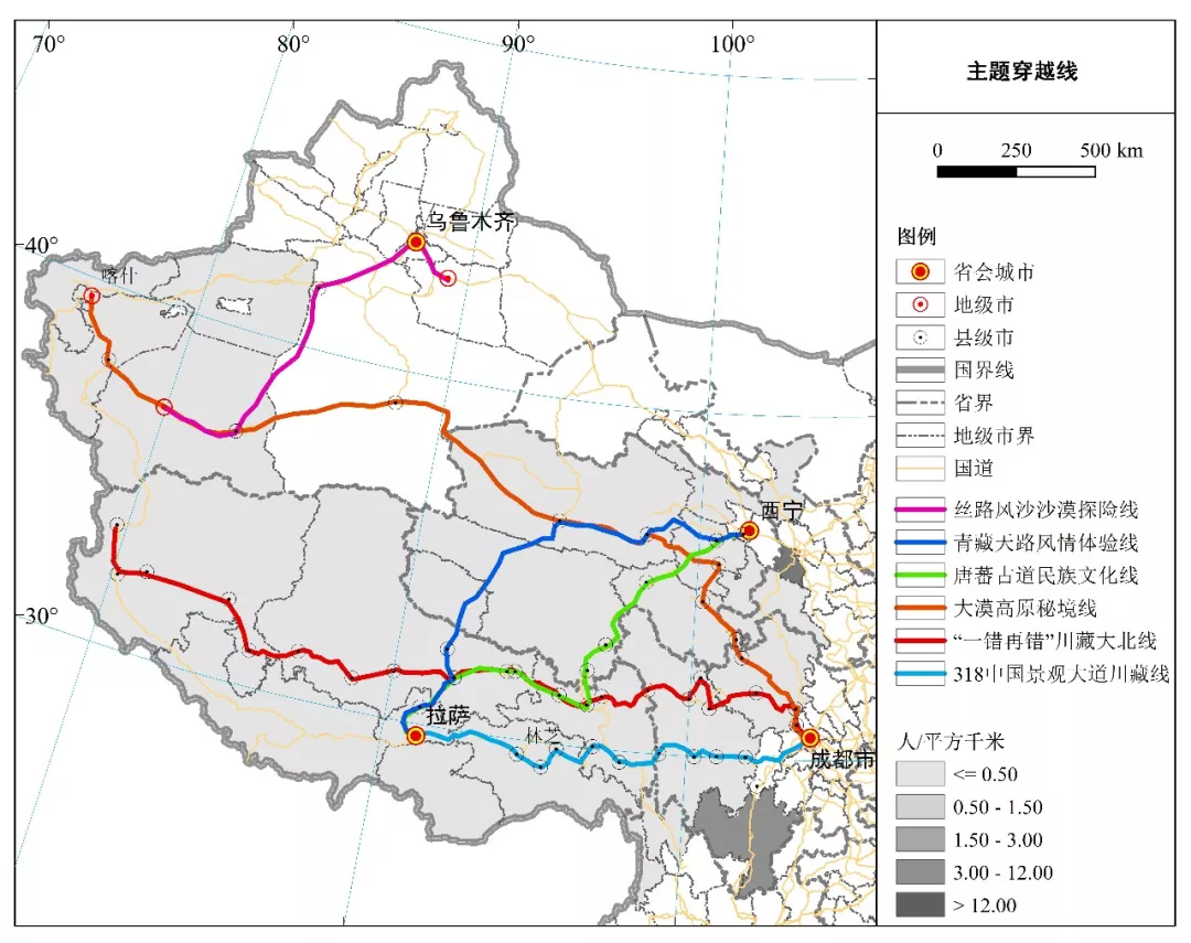 大环线设置4条支线线路,即北段—西段的丝路文化经典线、南段的边境极限体验线、东南段的滇藏茶马古道寻踪线、东段的大香格里拉人间乐土线;6条主题线路,即丝路风沙沙漠探险线、青藏天路风情体验线、唐蕃古道民族文化线、大漠高原秘境线、川藏大北线、318中国景观大道川藏线;56条徒步旅游线路,包括西藏10条、青海6条、川西10条、甘肃6条、云南14条、新疆10条。