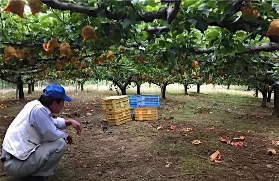 佐滕功氏先生的果园。棚架栽培法,既均匀日照,又人性化(日本人基本身高是1.7米,所以每一棵都休剪成1.8米高,以便果农打理和采摘)种植工艺标准化,准确控制一米10个梨,工艺标准甚至细到临近果子需几片叶子产生的营养,才能满足一个梨的生理生长需要的程度。