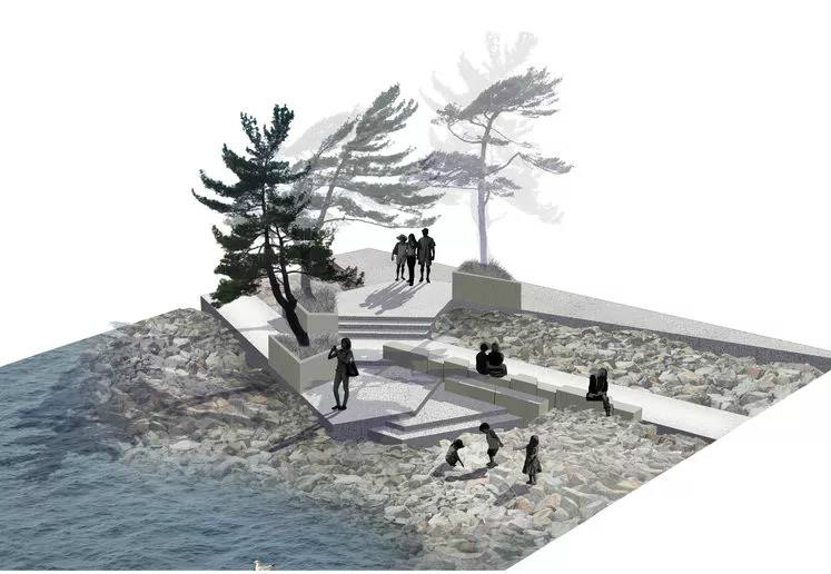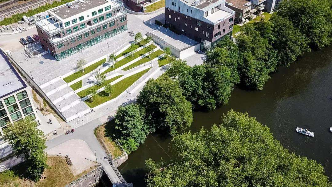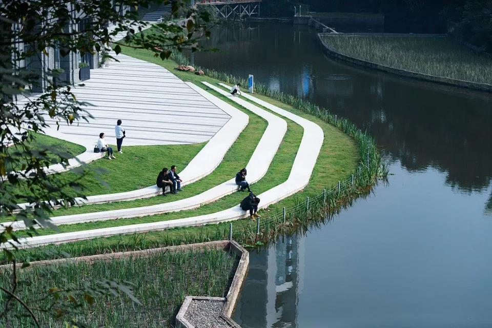 采用无障碍景观桥和退台式生态草阶的设计手法