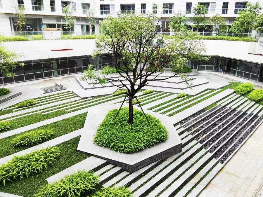如混凝土、耐候钢、分解花岗岩铺装系统