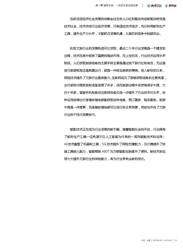 报告中提到,文旅行业正处在新一轮技术革命的起点,伴随AI和5G等新一轮技术的崛起,