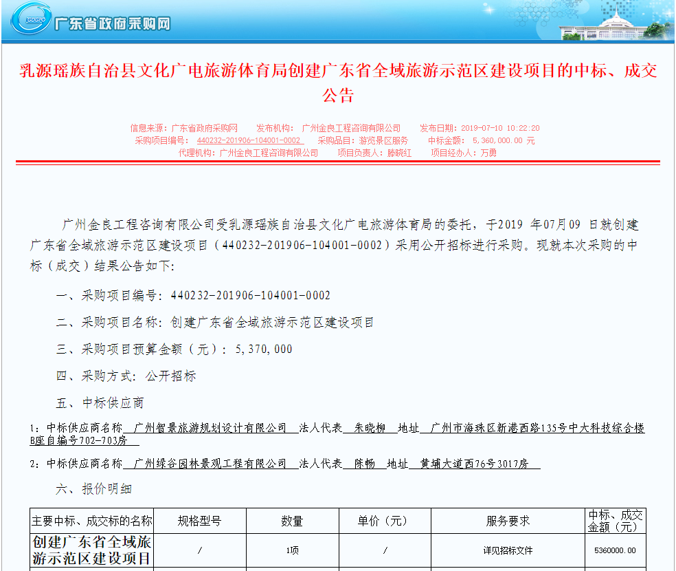 7月9日,我司中标《乳源瑶族自治县文化广电旅游体育局创建广东省全域旅游示范区建设项目》,由我司提供乳源县创建全域旅游示范区任务实施总服务。