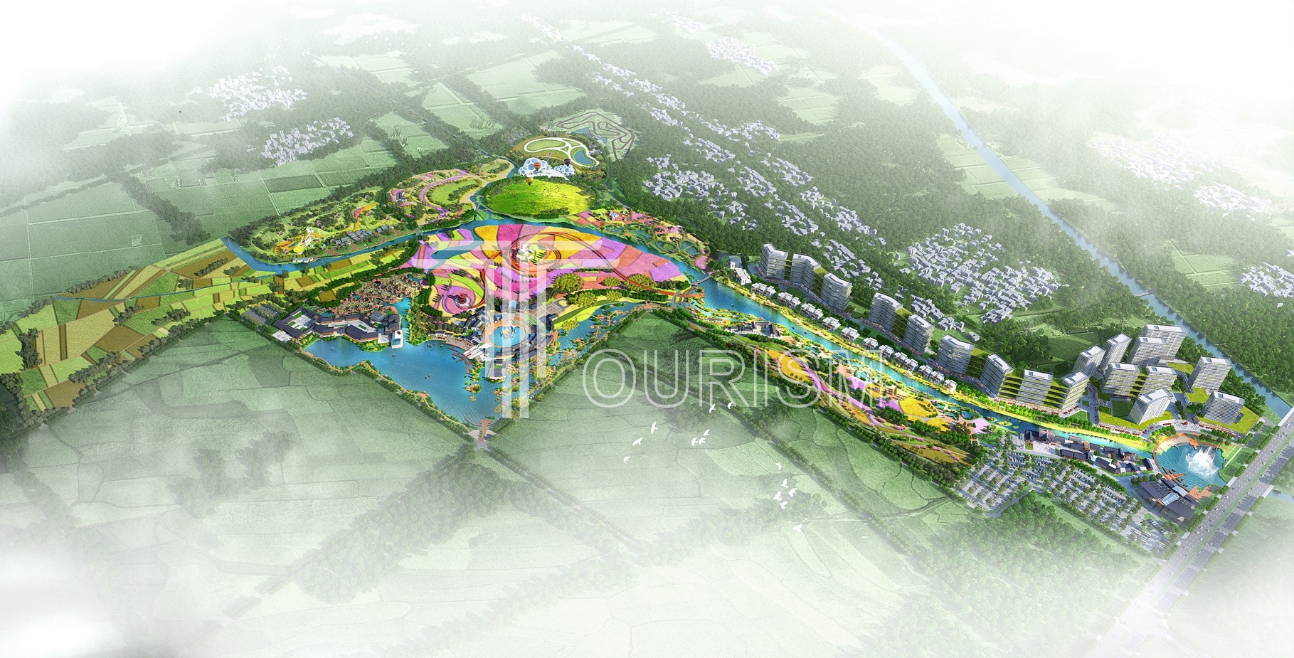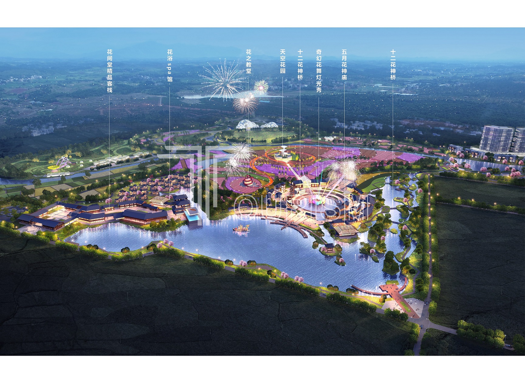 此次竞标中,项目组提出百花园不应该局限于千篇一律的生态农业观光领域,而应着眼于新时代经济社会深度转型,聚焦旅游消费高品质化发展趋势,通过从花到“她经济”的创意关联,面向爱花爱美、掌握家庭消费重要决策权、购买力高的年轻女性市场,建设一个以花境式体验为特色的花舞森林乐园,驱动闺蜜游、情侣游、亲子游市场。同时,亳州是巾帼英雄花木兰故里,项目组由此提出引入花木兰作为代言形象,展现女性可甜美可霸气的现代气质风范,打造一个具有人格特质的花园。在空间设计上以“女性水袖”为意向,从水系、道路、建筑的布局上,形成千亩级的流线设计。