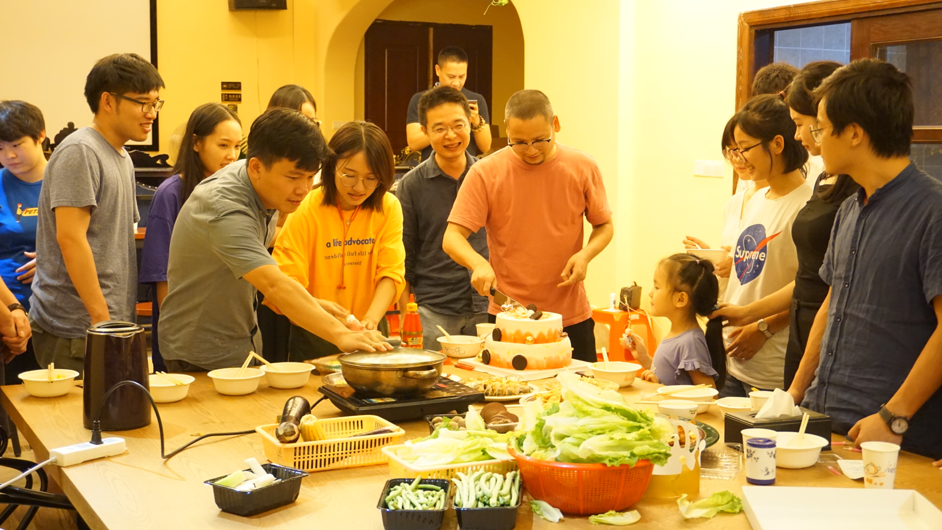 团建活动中,公司为两位总监举办了生日庆祝会,大家借此机会争做麦霸、竞展厨技。饭后组局的团建小游戏,则是“戏精”们的专场,让人仿佛身临大型表演现场。