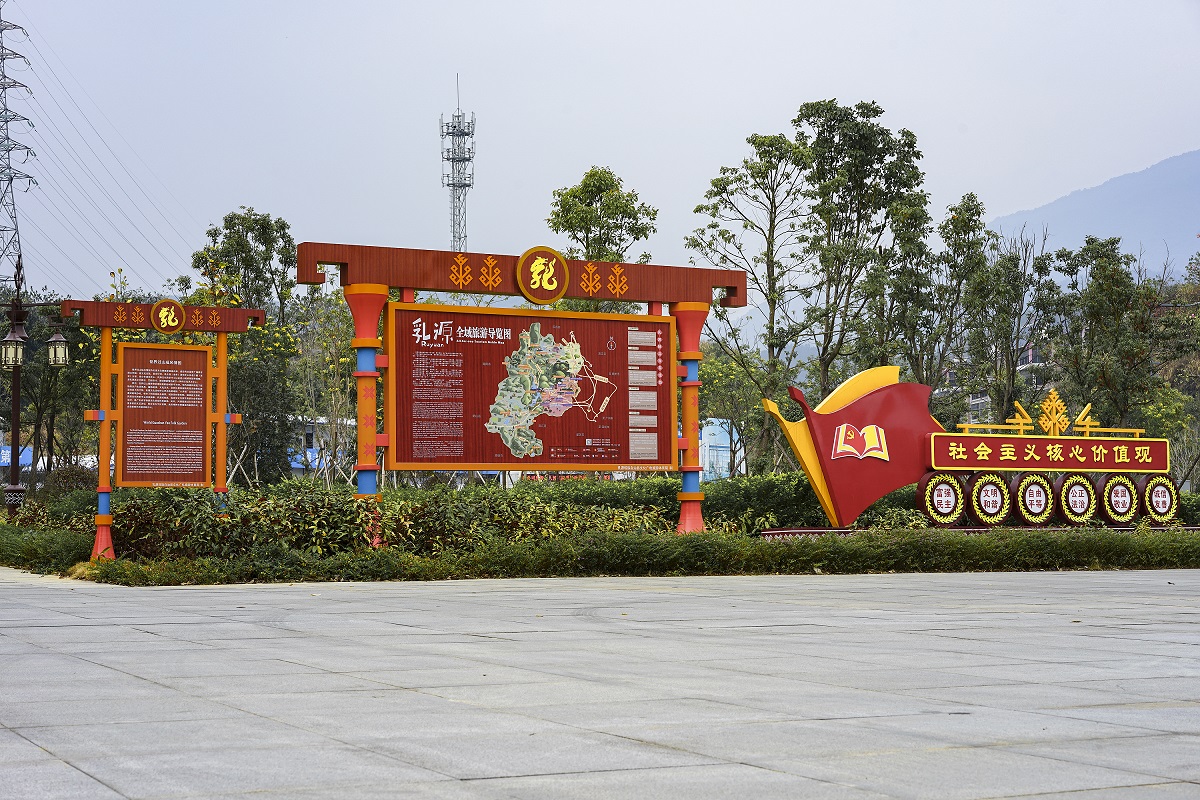 在旅游标识系统制作方面,我司根据全域旅游示范区创建验收文件要求,融合瑶族长鼓、树形纹等元素,高标准制作了全景导览标识、方向引导标识、景物介绍标识。采用瑶族元素进行设计的标识系统普及全县全域,为乳源风情城市风貌营造添砖加瓦。