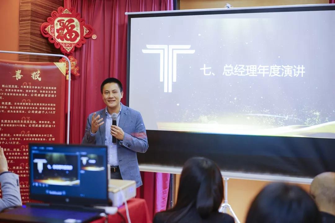 总经理陈欢作2020年年会总结讲话。陈总分享了自己的职场经历及创业经历,勉励新同事要克服内心障碍,克服孤独感,主动融入大家庭,勇敢担当。最后,他强调要坚持“谦逊、精进、包容、感恩”的团队价值观,在经济不景气、行业大调整面前,要保持内心的平静,认真做事,笃定前行。
