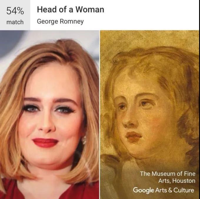 歌手Adele和与她长相类似的肖像作品