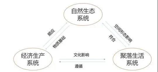 乡村空间“地域基因”可归纳为“三生”系统:自然生态系统、经济生产系统、聚落生活系统,可为乡村风貌特色的总体营建提供策略性的基础支撑。