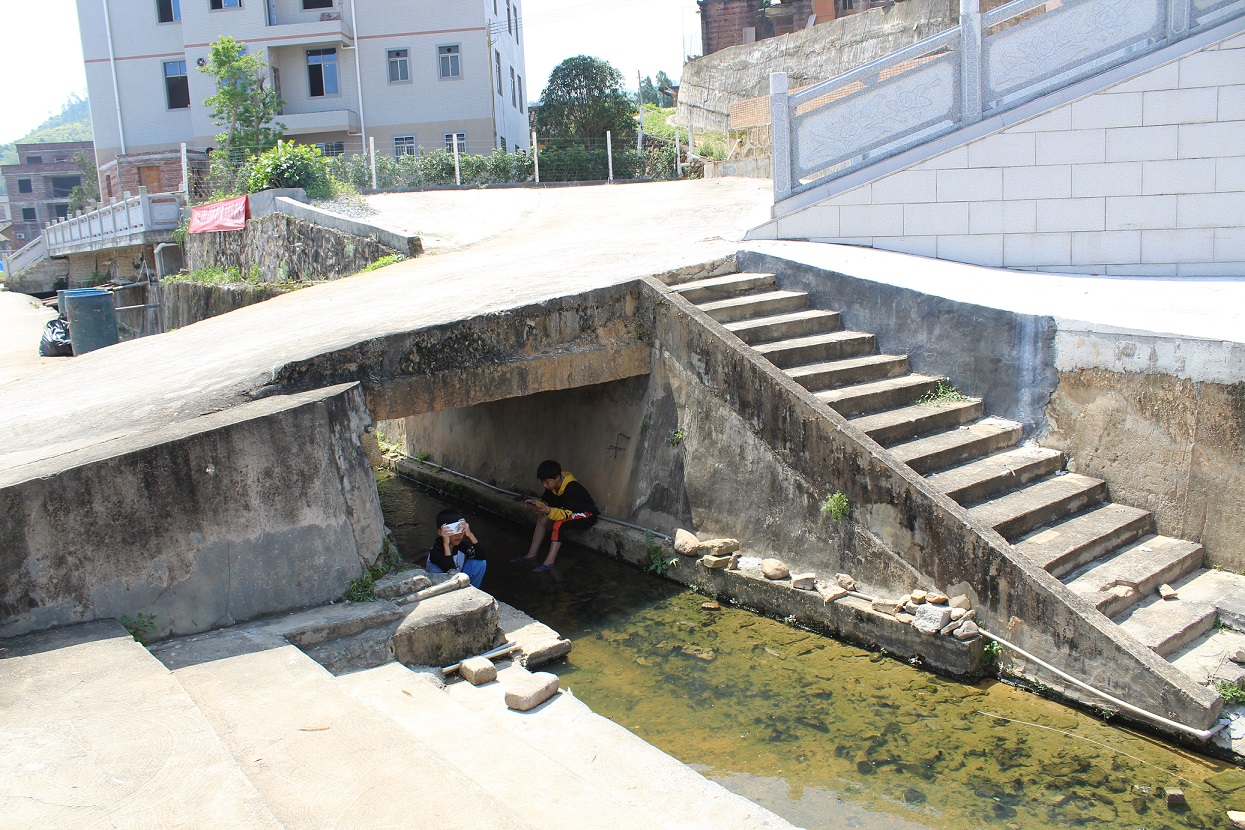 △黄村镇露天温泉河,当地少年桥底泡脚玩游戏,不亦乐乎
