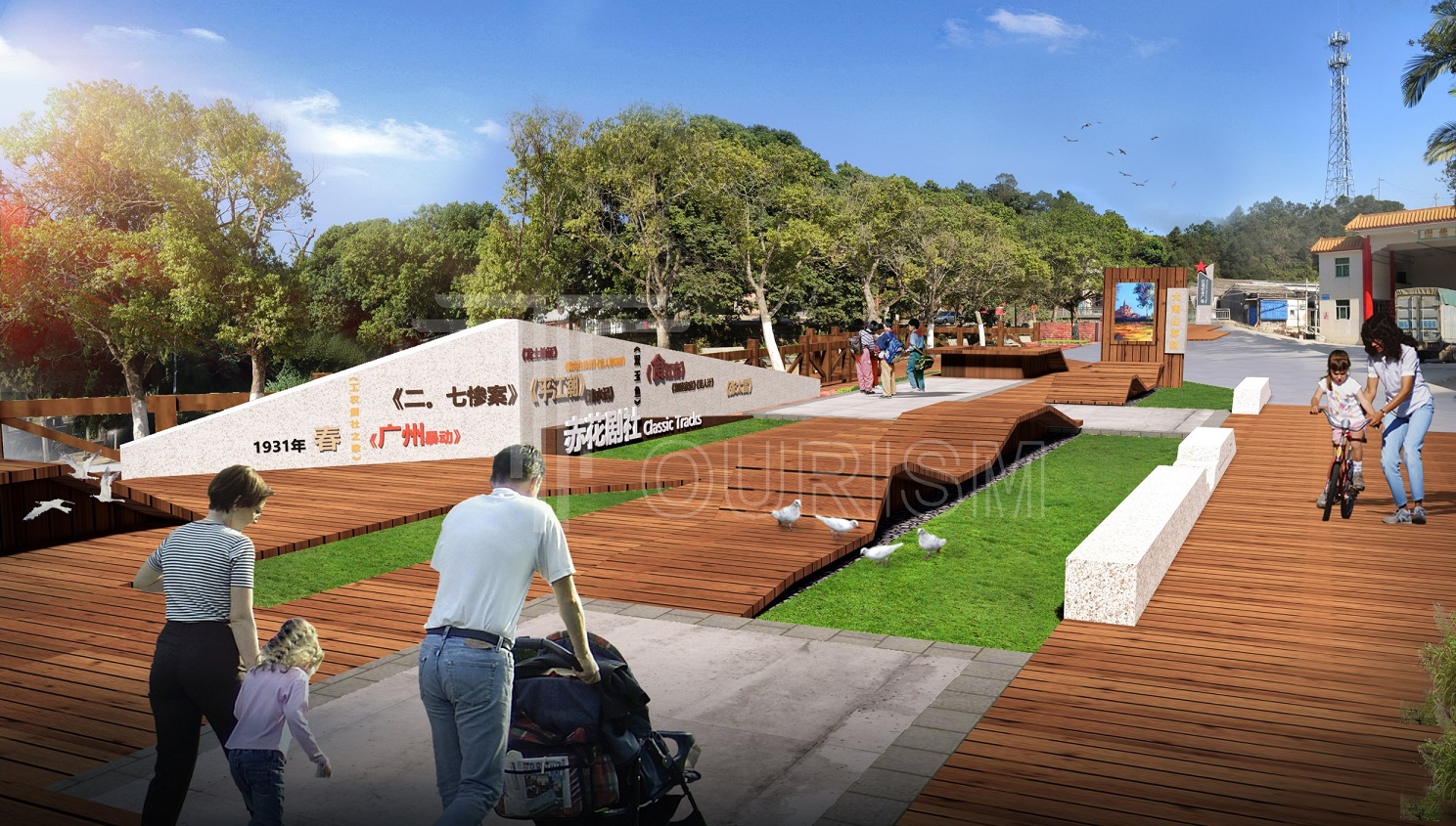 周边至今保存的两次会议旧址、东江特委领导机关办公旧址、红军营房、西南红军医院旧址、大南山石刻标语、彭湃阅兵的红场广场、全国最早的红色戏剧运动典型——赤花剧社、彭杨军校等红色遗址遗迹,为我们展现了1930年前后大南山苏区党的政权建设和苏区军民生活的生动图景。项目组据此按照“苏区精神现代化、苏区生活景观化”的思路进行创意重构,围绕“苏区1930品牌”将大溪坝村至红场的核心段作为大南山革命纪念公园,提出打造一处苏区生活沉浸式体验空间。