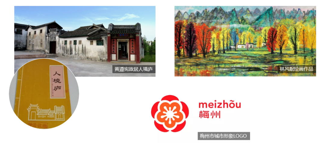 提取黄遵宪故居、林风眠画作彩叶林和梅州城市形象LOGO进行创作设计