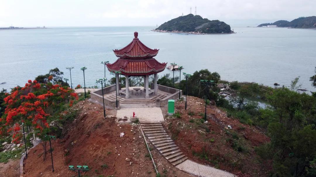 △修缮中的观海亭,该亭由前党和国家领导人陶铸倡议,渔民称为陶公亭
