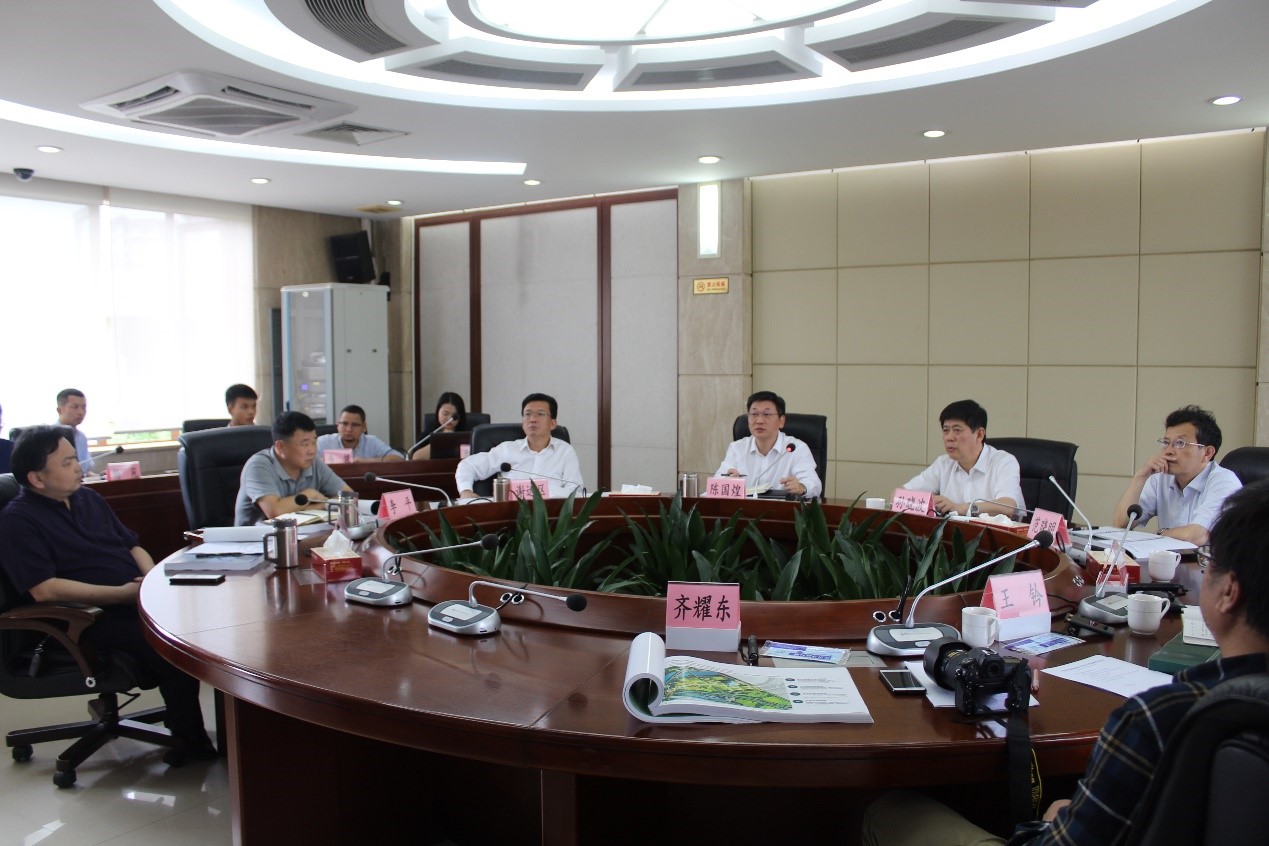 △中国医学科学院药植所所长孙晓波、书记范晓明等专家组成员及县委书记陈国煌、县长谢远区听取方案汇报