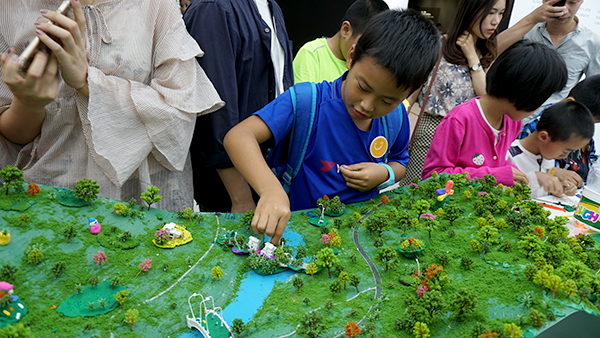 “对儿童友好的世界,其实是对所有人都友好的。”该展品的项目负责人赵小姐解释道。 在现代城市中,儿童一方面被投射了过度的关注与期望,另一方面,又是只有人形没有名字的失语者,他们的诉求与视角显得微弱与单薄。在体面地进出购物中心之间,我们以为一个玩具是可以搪塞掉大部分他们“想要……”的原始天性。比起在乡野,从出生到成长都被坚硬建筑包围的城市儿童,体验的是另一种全新的游玩空间与路线。 美国作家理查德·卢福《林中的最后一个孩子》(Last Child in the Woods)一书中指出了现代城市儿童“自然缺乏症”的问题。虚拟空间乃至虚拟意识不可避免地侵占了他们的童年,而今天的“都市景观”往往与真正的园林无关。儿童友好型的城市应该具备什么?在城市的规划与建设之中,是谁在替儿童考虑? 联合国最早于1996年在伊斯坦布尔召开的第二届人类居住会议中提出了“儿童友好型城市”的概念,意指“一个明智的政府在城市所有方面全面履行儿童权利公约的结果,不论大城市、中等城市、小城市或者社区,在公共事务中都应给予儿童政治优先权,将儿童纳入决策体系中”。 全世界现有400多个城市获得了联合国“儿童友好型城市”的认证称号,如伦敦、西雅图、哥本哈根等,但中国迄今仍没有城市获得该称号。深圳2016年提出将“积极推动儿童友好型城市建设”纳入市委的年度工作要点和深圳市“十三五”总体规划,是首个提出这一建设目标的中国城市。 在联合国儿童基金会(UNICEF)的准则里,明确标注着在儿童友好型城市中,政府应当承诺赋予儿童十二项相关权利,包括生存、教育、医疗、参与等。对深圳而言,外来打工者子女的教育、城中村儿童的居住空间、社区规划的参与和设计等,都有着显著的特殊性。时代默默留下了困惑与机遇。