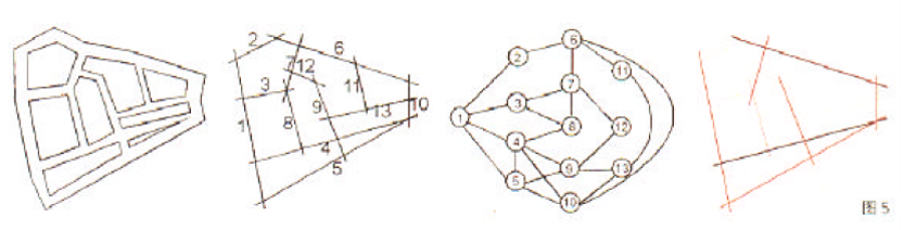 进行空间句法分析,首先要知道空间的构形。构形分析首先要把空间系统转化为节点及其相互连接组成的关系图解,其中,每个节点代表空间系统的一个组成单元。这种将整个空间系统划分为各组成单元的过程称为空间分割。