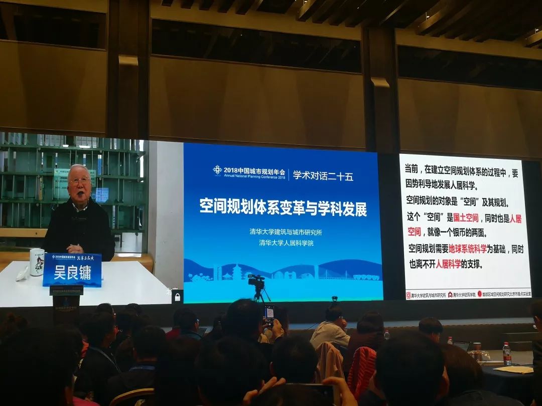 11月26日,由中国城市规划学会主办、清华大学建筑与城市设计研究所、清华大学人居研究院承办的2018年中国城市规划年会学术对话“空间规划体系变革与学科发展”,会议由学会常务理事、清华大学建筑学院教授吴唯佳主持,学会名誉理事长吴良镛院士、学会常务副理事长兼秘书长石楠、原住建部总规划师陈为邦、国务院发展中心研究员李善同、学会常务理事、北京大学环境学院教授冯长春、学会常务理事、中国人民大学公共管理学院教授叶裕民、中国土地勘测规划院总工程师、研究员张晓玲、学会常务理事、华南理工大学建筑学院教授袁奇峰等就会议主题进行发言。