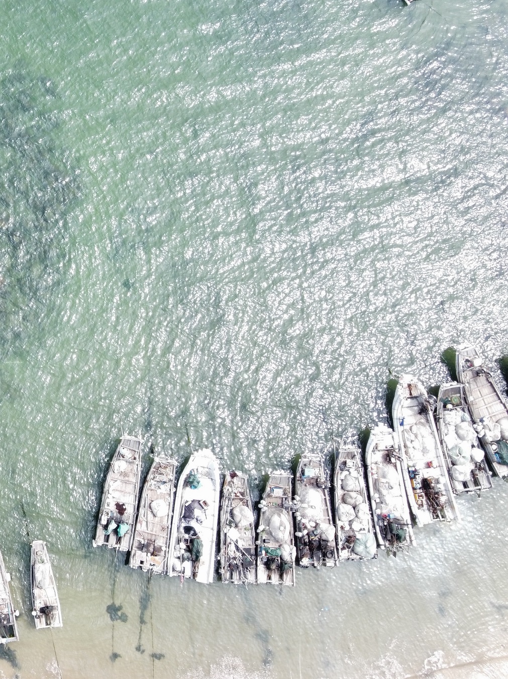 图 | 客鸟尾的海岸线及渔船,海水非常清静
