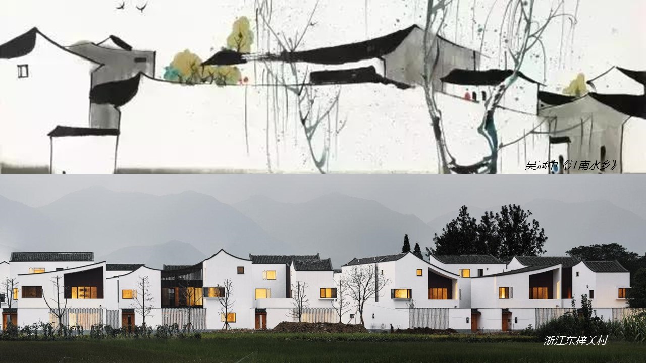 图 | 浙江东梓关村运用吴冠中《江南水乡》艺术元素,实现从艺术特征到乡村美学特征的转化