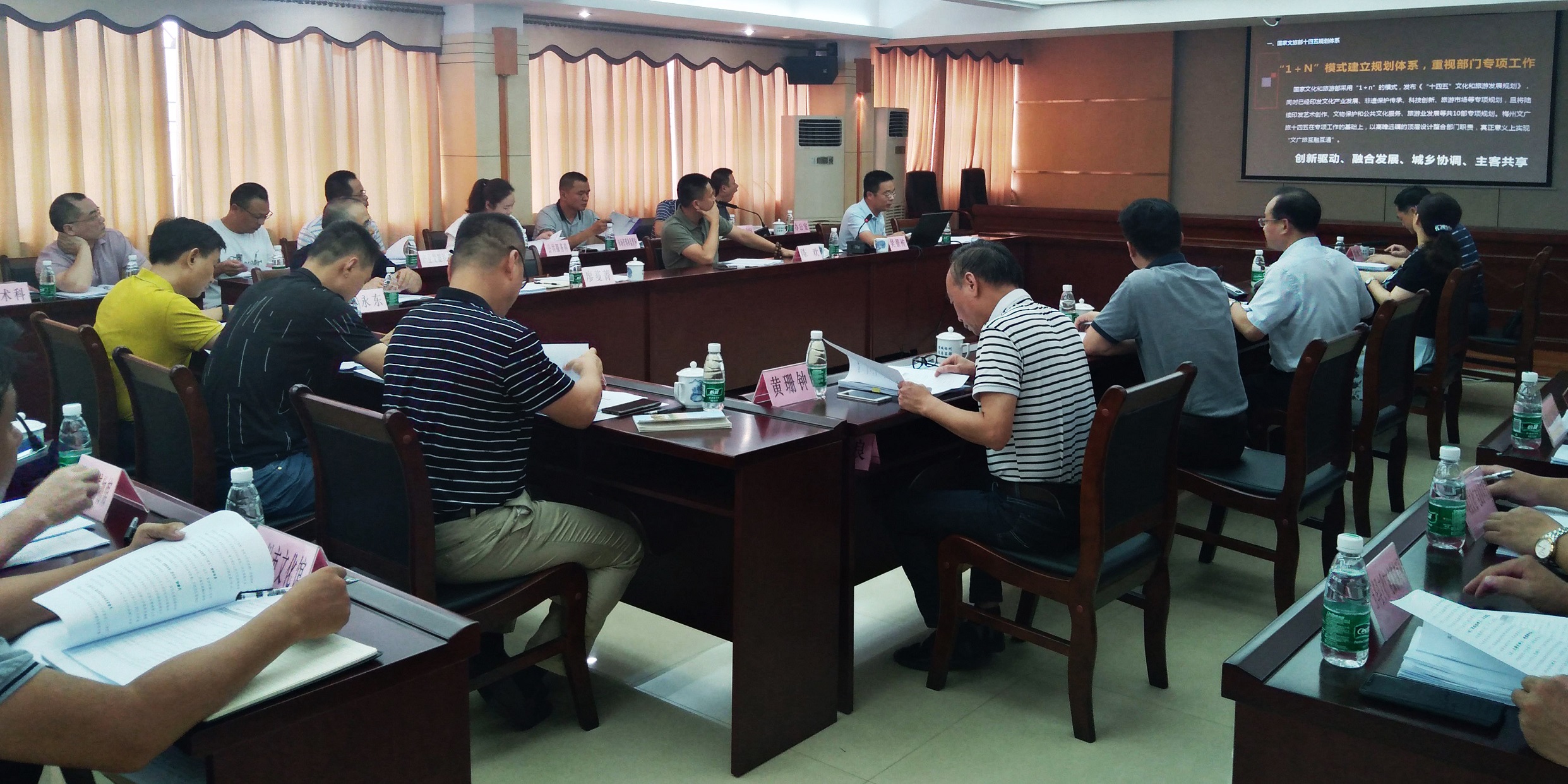相比《规划》初稿,本次修改在顶层设计、框架理念方面做了重大调整,力争“打模板、作示范”。在项目组汇报成果后,讨论热烈,谢钦文局长现场部署各科室、各县(市、区)组织专项研究,并要求各县(市、区)递交《规划》至县委、县政府,力求将文旅发展理念前置到城市建设。