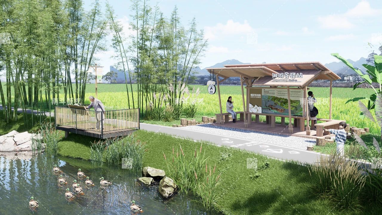 在田园生态方面,规划方案利用园区内的机耕路、引水渠、废弃水塘等农业基础设施,在不占用基本农田的前提下,通过景观化改造、轻量化开发,策划适合不同客群需求的稻田观光、稻田休闲、稻田游乐、稻田研学业态,将稻田的空间价值、景观价值转换为商业价值。