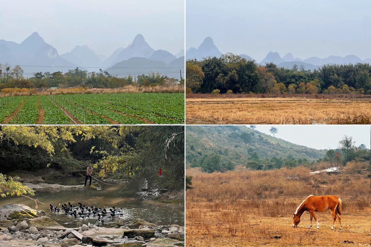 项目场地涵盖万亩良田,是广东省丝苗米跨县集群产业园(清远市)核心组成部分。稻田中部以河为脉,串联起多个村庄,其中联滘村是广东省“百千万工程”典型村,去年已完成多个特色村的提升建设。北侧则紧邻白湾省级自然保护区,在喀斯特峰林的衬托下,村庄袅袅、稻田绵延、风景如画。