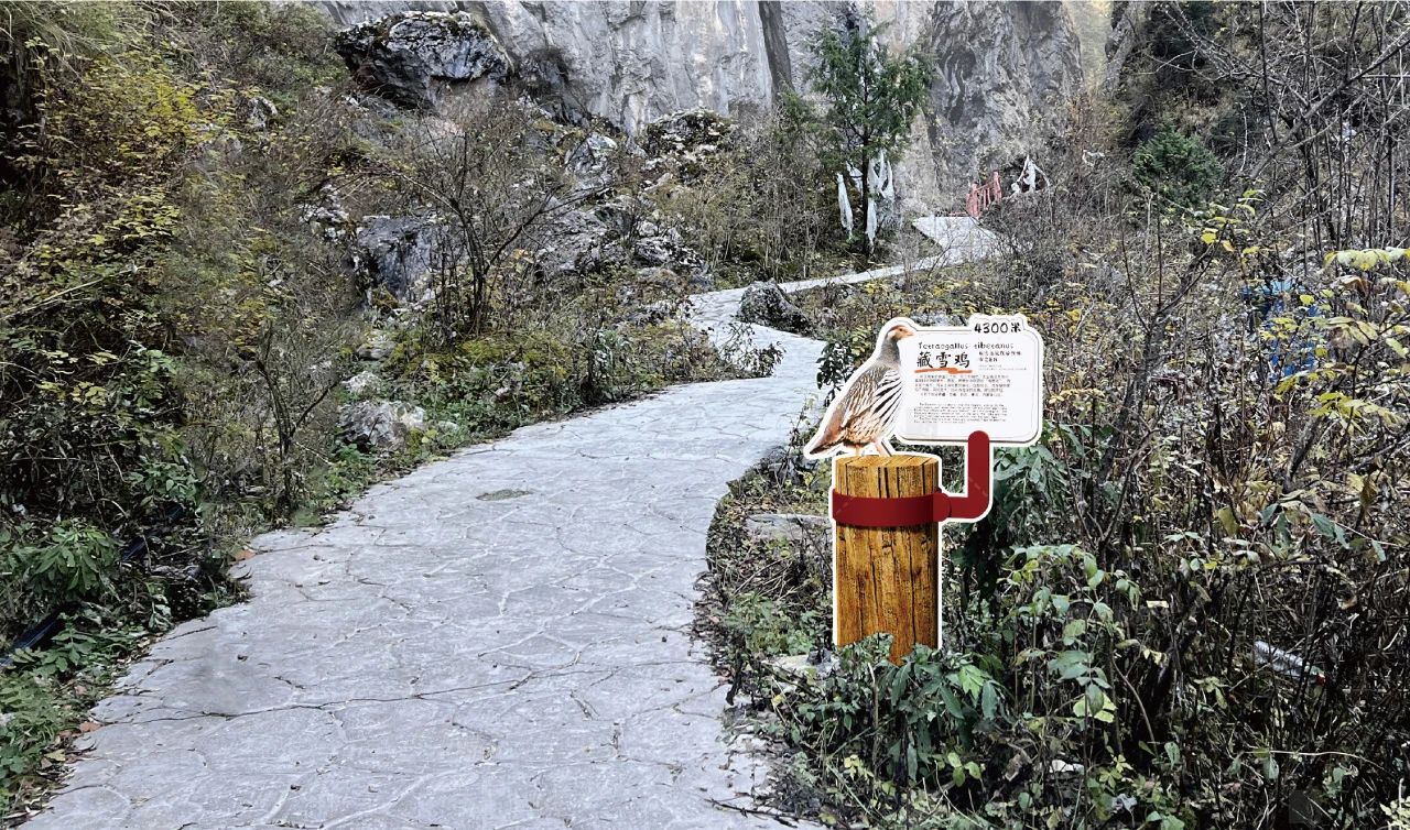 在扎尕那的生态徒步线上,我们采用了“无痕介入”的设计理念,每一块解说牌都像自然生长出来的路标——原木的木桩上阴刻了道路坐标及指南针,并附上探险者们留下的高原物种观察笔记。