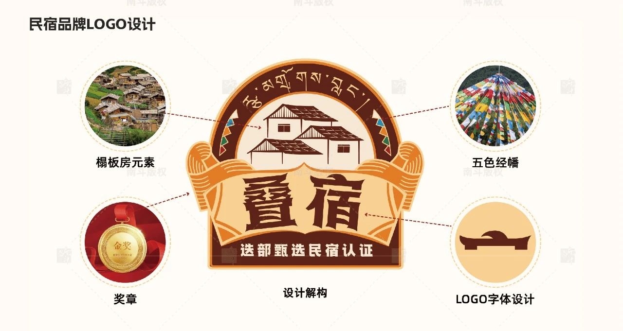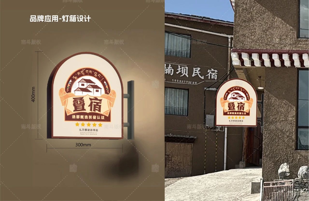 我们为扎尕那民宿集群打造了统一的民宿品牌——叠宿,用于星级民宿的评选和认定。标识牌的设计采用木板装订的形式,就像是冒险家们的好评榜,也规范化了景区的民宿导视。